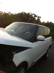 This white range rover was damaged in a crash just before Epe Bridge. Choi! Another photo after the cut..